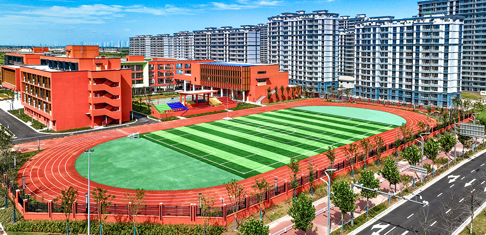 位于港城安置區(qū)一期B區(qū)南側(cè),占地面積46.5畝,建筑面積約2.2萬平方米,總投資約1.5億元。建設(shè)規(guī)模滿足36個班級1620人的辦學需求。項目總體布局采用院落式布局,包含教學樓、綜合樓、風雨操場、門衛(wèi)、看臺五個單位工程。校園建筑整體為哈弗紅現(xiàn)代風格、局部點綴彩色形體,增添活躍元素。